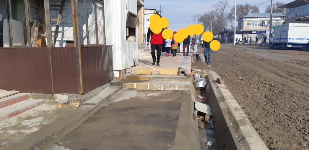 «Идет ремонт дороги. Недавно сделали новый тротуар, но возле торгового центра «Айым» оставили высокий участок. Как будут проходить по нему женщины с колясками или люди в инвалидных колясках?» — написал он.