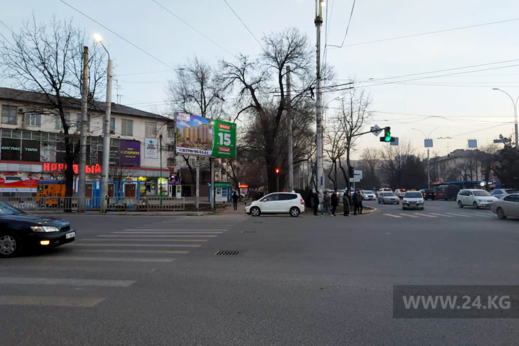 Таксисты — злостные нарушители правил парковки. Очередной водитель встал на перекрестке улицы Ахунбаева и проспекта Айтматова.