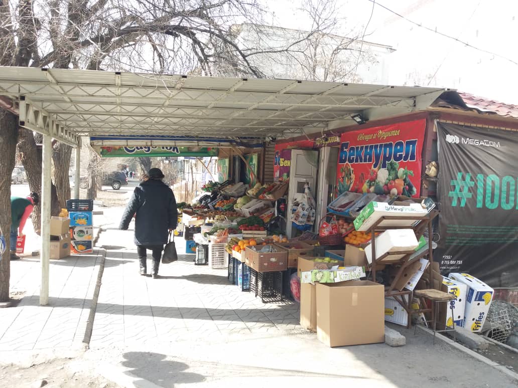 В 5-м микрорайоне Бишкека возле дома № 43 владельцы торговых точек соорудили навесы над тротуарами, где выставляют свои товары. Об этом 24-kg.com сообщил читатель.