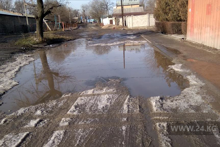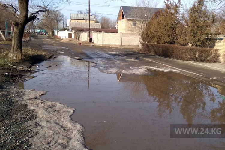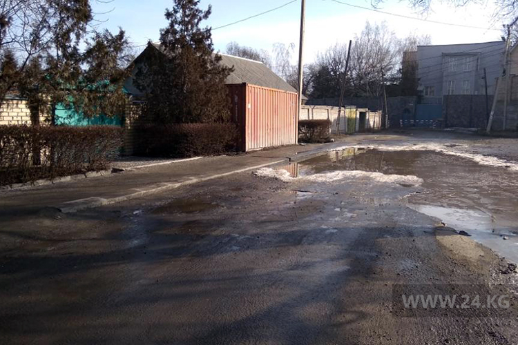 Бишкекчане просят отремонтировать улицу Куренкеева. Лужа не просыхает уже 4 месяца. Об этом сообщил читатель.