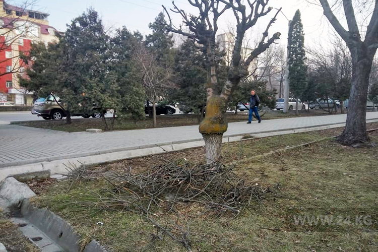 В Бишкеке продолжают варварски обрезать деревья. Об этом 24.kg сообщили читатели.