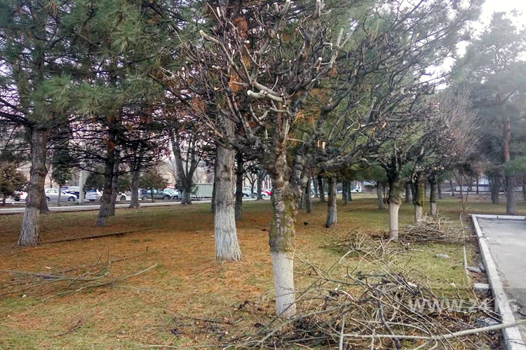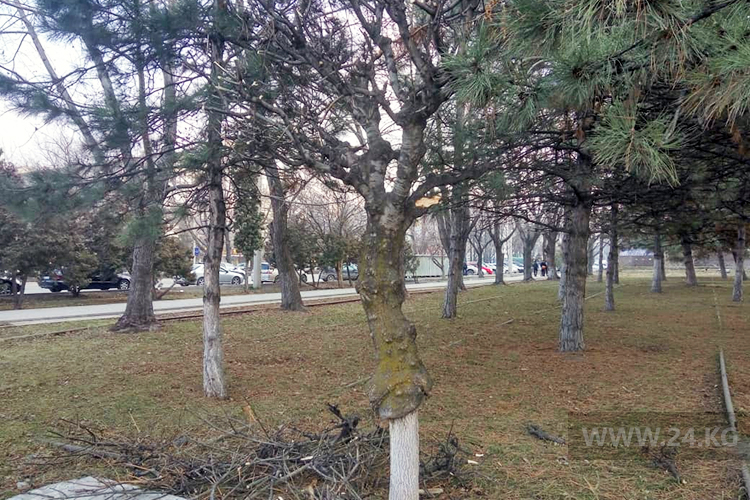 На площади Победы обрезали все деревья. Горожанам непонятно, зачем Бишкекзеленхоз обрубил все молодые ветки, оставив только старые.