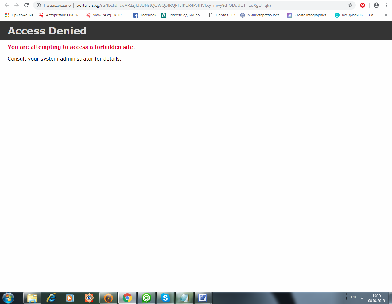 При попытке зайти на сайт www.portal.srs.kg и проверить наличие штрафов о нарушении Правил дорожного движения выходит предупреждение «Вы пытаетесь получить доступ к запрещенному сайту. Обратитесь к системному администратору для получения подробной информации».