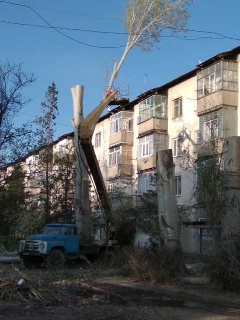 В городе Шопокове вырубают вековые тополя. Об этом 24-kg.com сообщил читатель.
