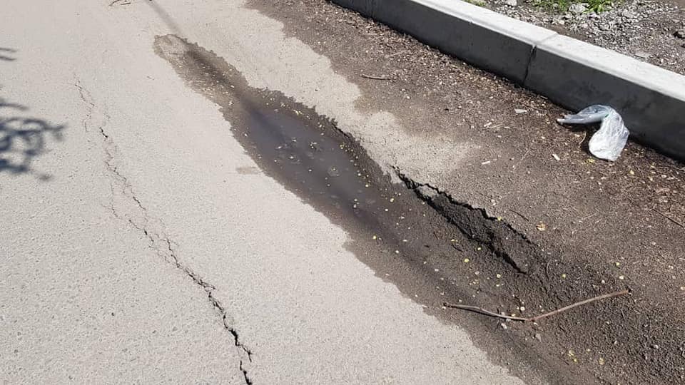 Напомним, асфальт провалился также на улице Салиевой, где ремонт также проводили в прошлом году.