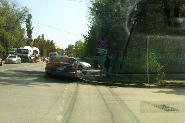 Под запрещающим знаком встал и этот водитель на проспекте Айтматова.
