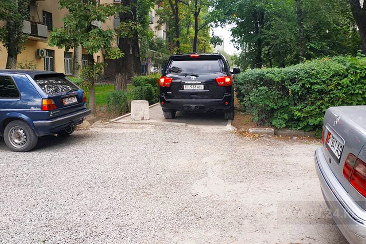 На тротуаре на улице Профессора Зимы в жилмассиве «Ак-Босого» постоянно ставят машины.