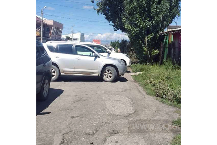 Жители Каракола жалуются на автовладельцев, загородивших проход. «Где ходить пешеходам? Иногда идешь с детьми и приходиться обходить машины по дороге», — сетует читатель.