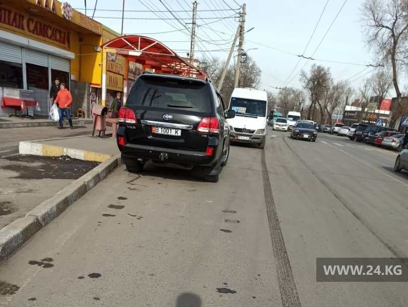 На улице Асаналиева внедорожник стоял на остановке общественного транспорта против движения.
