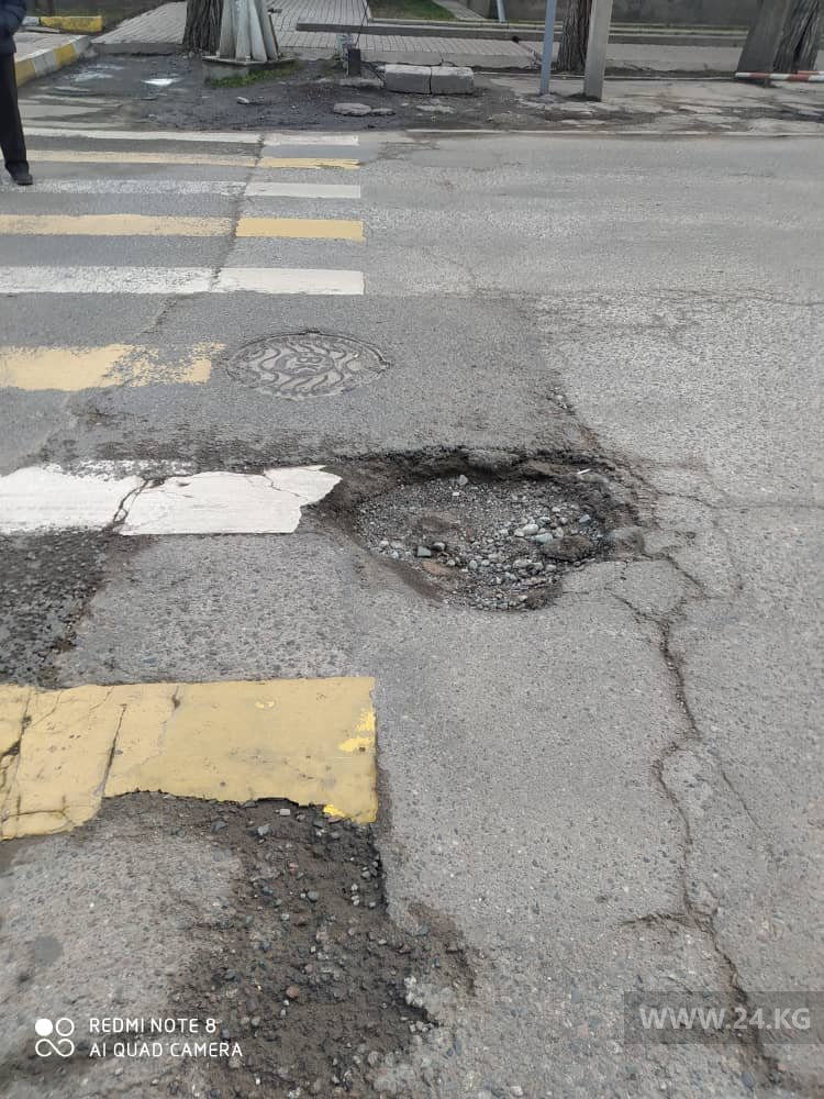 «В центре города, на пересечении Московской и Панфилова, огромная яма. Создает аварийную ситуацию», — написал бишкекчанин.