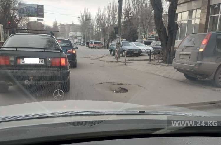 Ранее читатель сообщил, что на пересечении улицы Абдрахманова и проспекта Чуй образовалась яма на дороге.