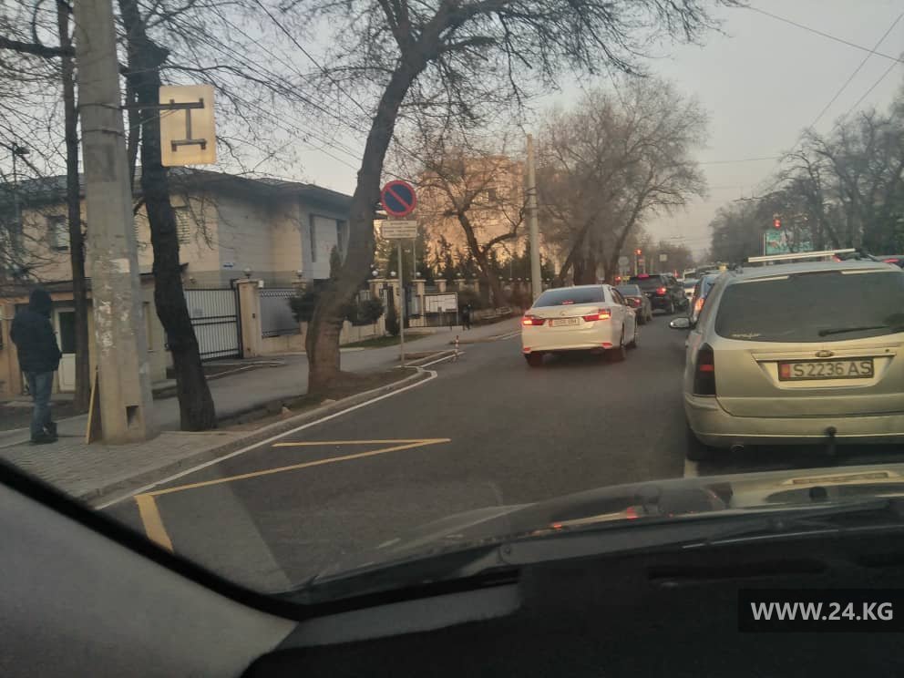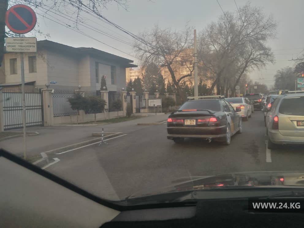 Сразу несколько машин выехали на полосу встречного движения, в том числе бус (01 KG611AAG).