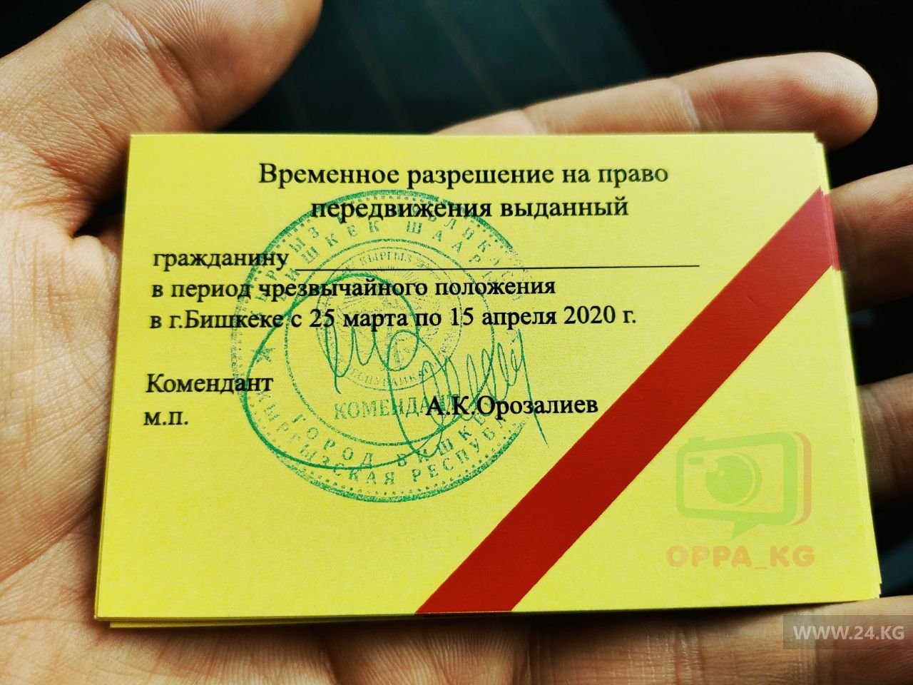 Фото из соцсетей. Пропуск для передвижения по Бишкеку на время ЧП