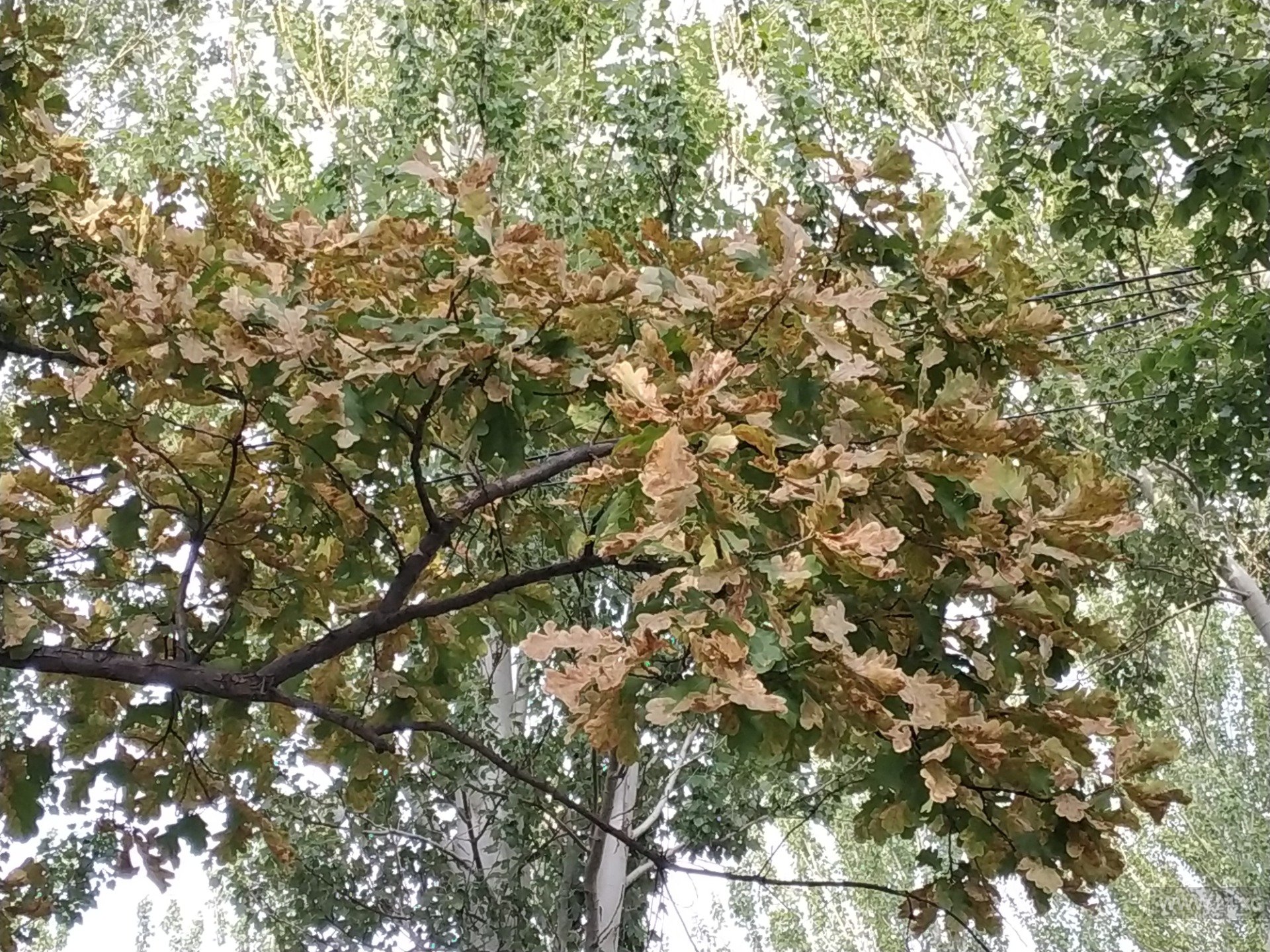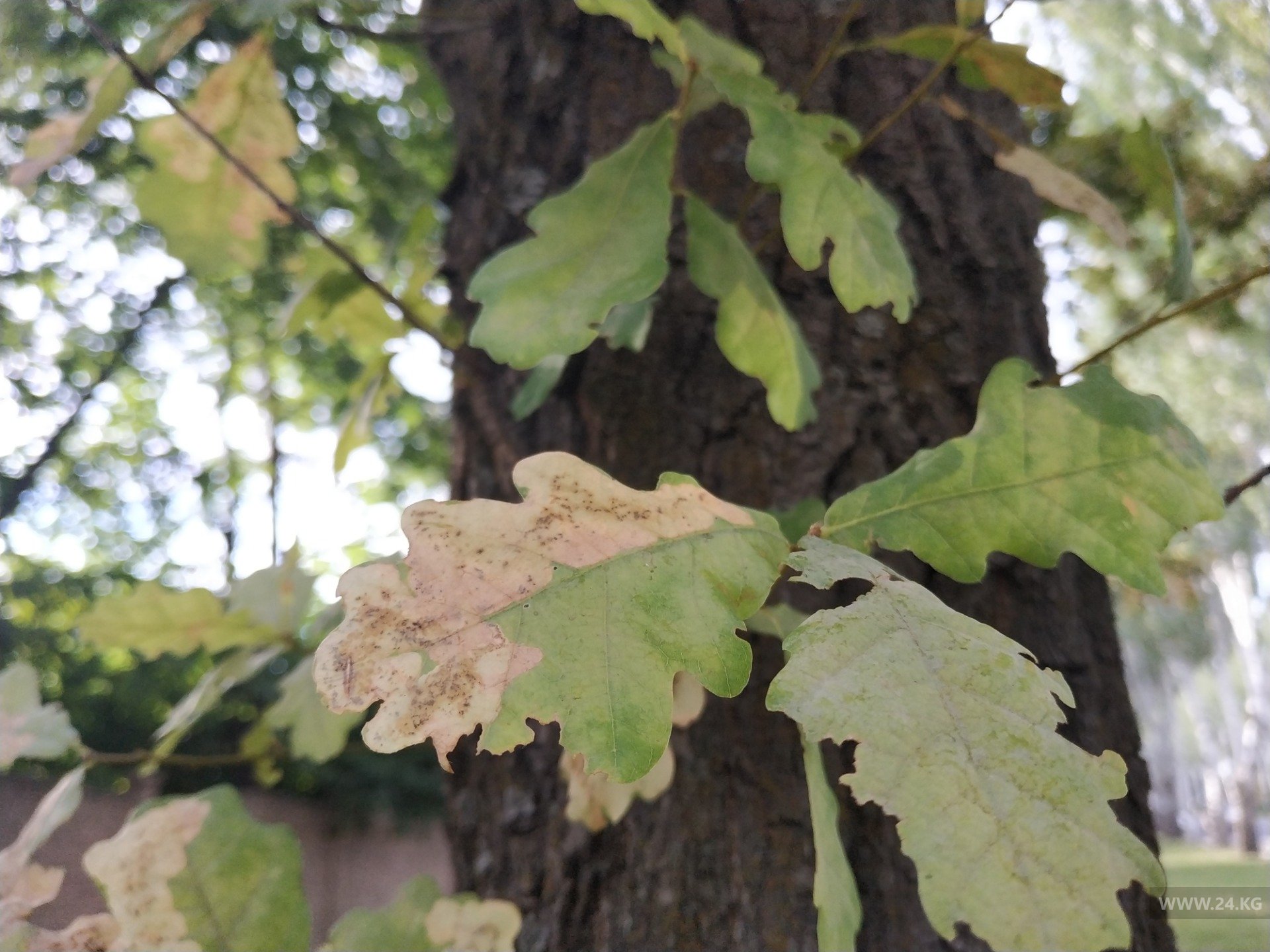 В Бишкеке листва на дубах вновь начала рано желтеть. Об этом 24-kg.com сообщил читатель.