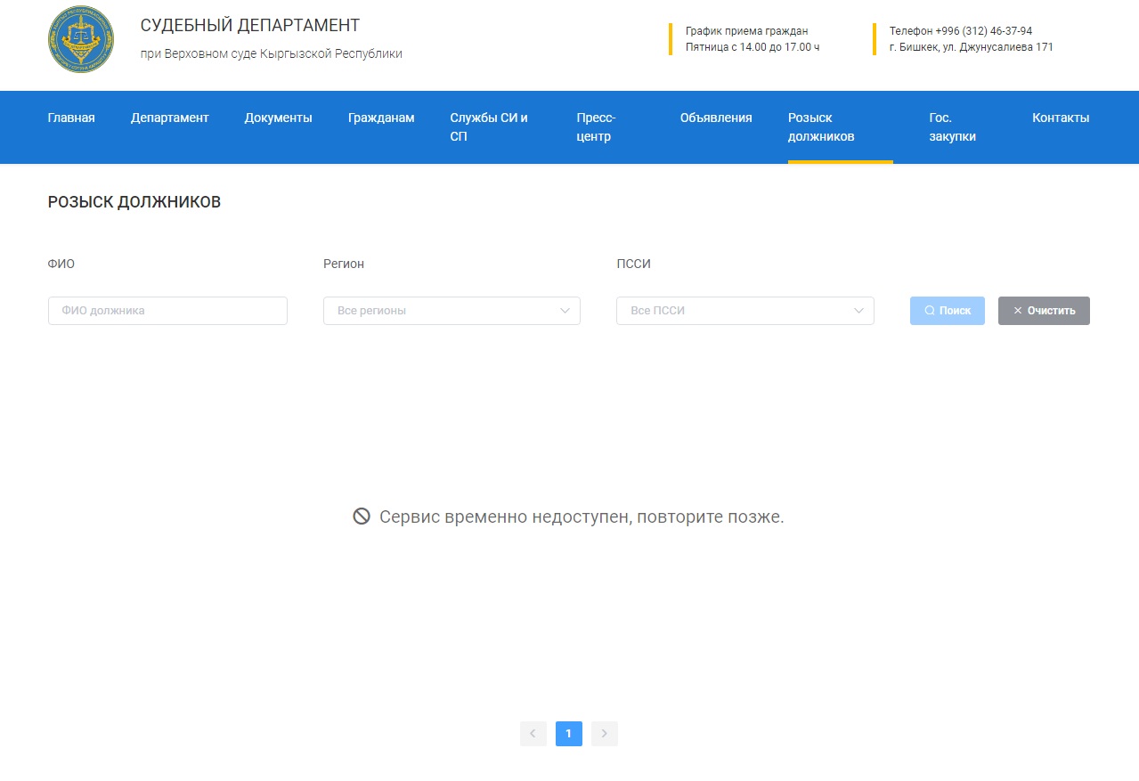 Раздел «Розыск должников» на сайте Судебного департамента перестал работать. Об этом 24-kg.com сообщила читательница.