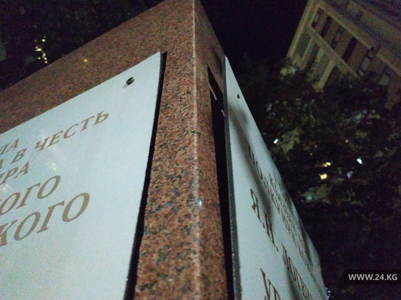 Табличку на стеле, установленной в честь командира 1-го Пишпекского красноармейского полка Якова Логвиненко, плохо прикрепили. Об этом 24-kg.com сообщил читатель.