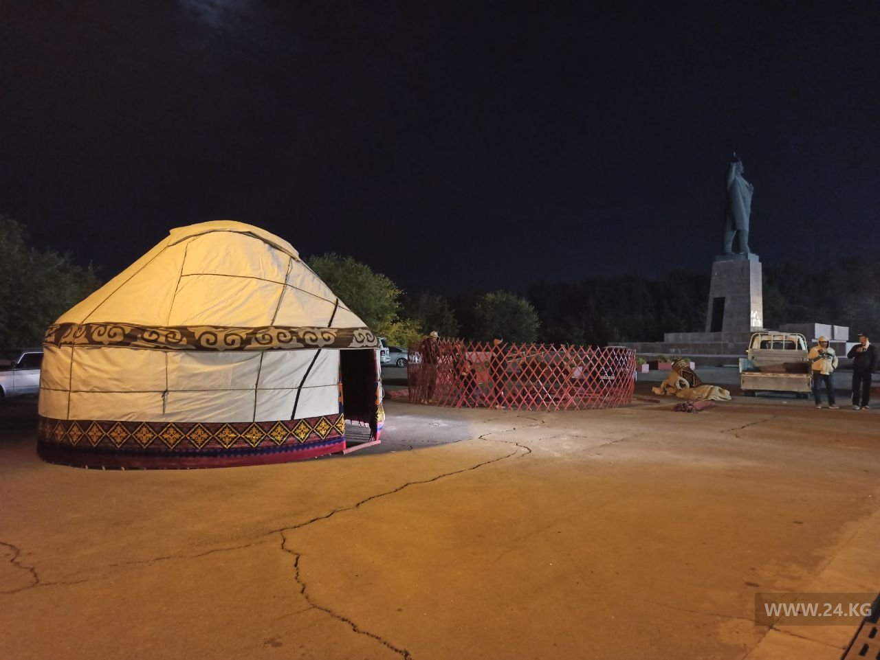 На центральной площади в Оше устанавливают юрты. Об этом сообщает читатель 24-kg.com.
