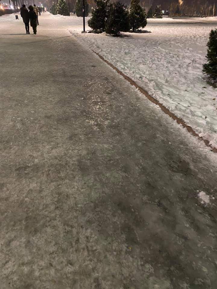 Жительница Бишкека пожаловалась на скользкие тротуары в центре столицы. Своим возмущением Юлия Фролова поделилась на Facebook.