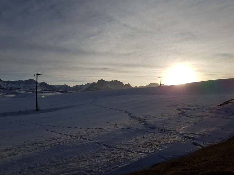 На природе любит проводить время даже зимой еще один наш постоянный автор Людмила Делова. В одну из вылазок она смогла запечатлеть закат над замерзшим Ала-Арчинским водохранилищем.