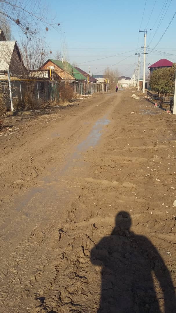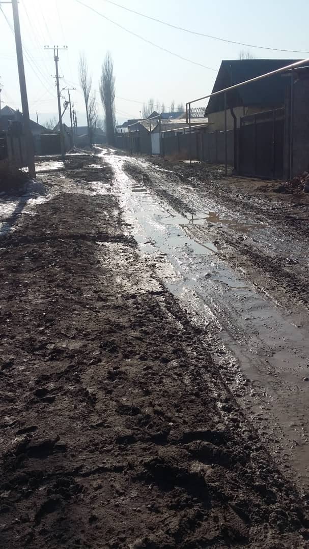 «Жилмассив «Арча-Бешик», улица Кара-Кужур. По-прежнему по колено в грязи. Когда власти обратят внимание?» — интересуется местный житель.