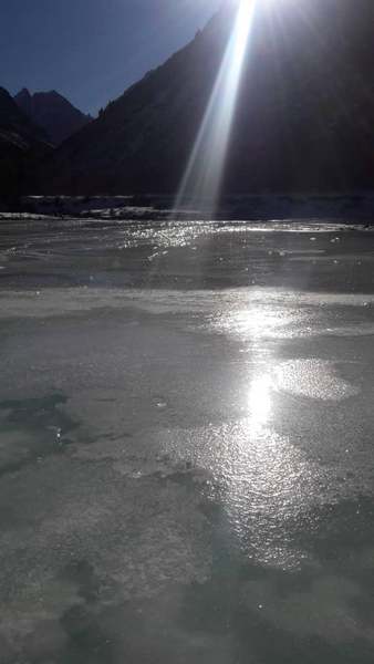Выберемся за город, где еще лежат снег и лед, но такое яркое солнце. Его лучи и смогла поймать в Ала-Арчинском ущелье Людмила Ромашка.