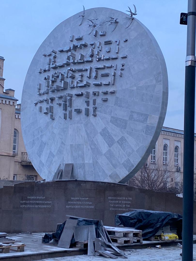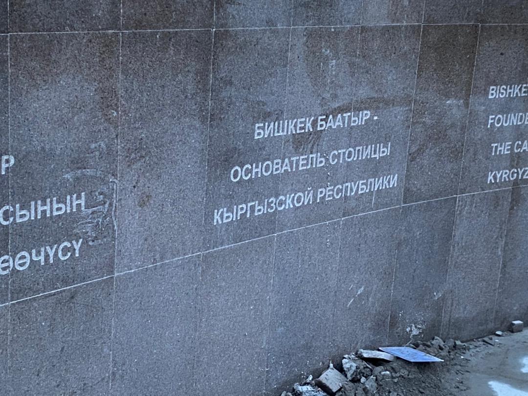 На монументе Бишкеку баатыру в столице появилась надпись: «Бишкек баатыр — основатель столицы Кыргызской Республики». Об этом 24-kg.com сообщил читатель.