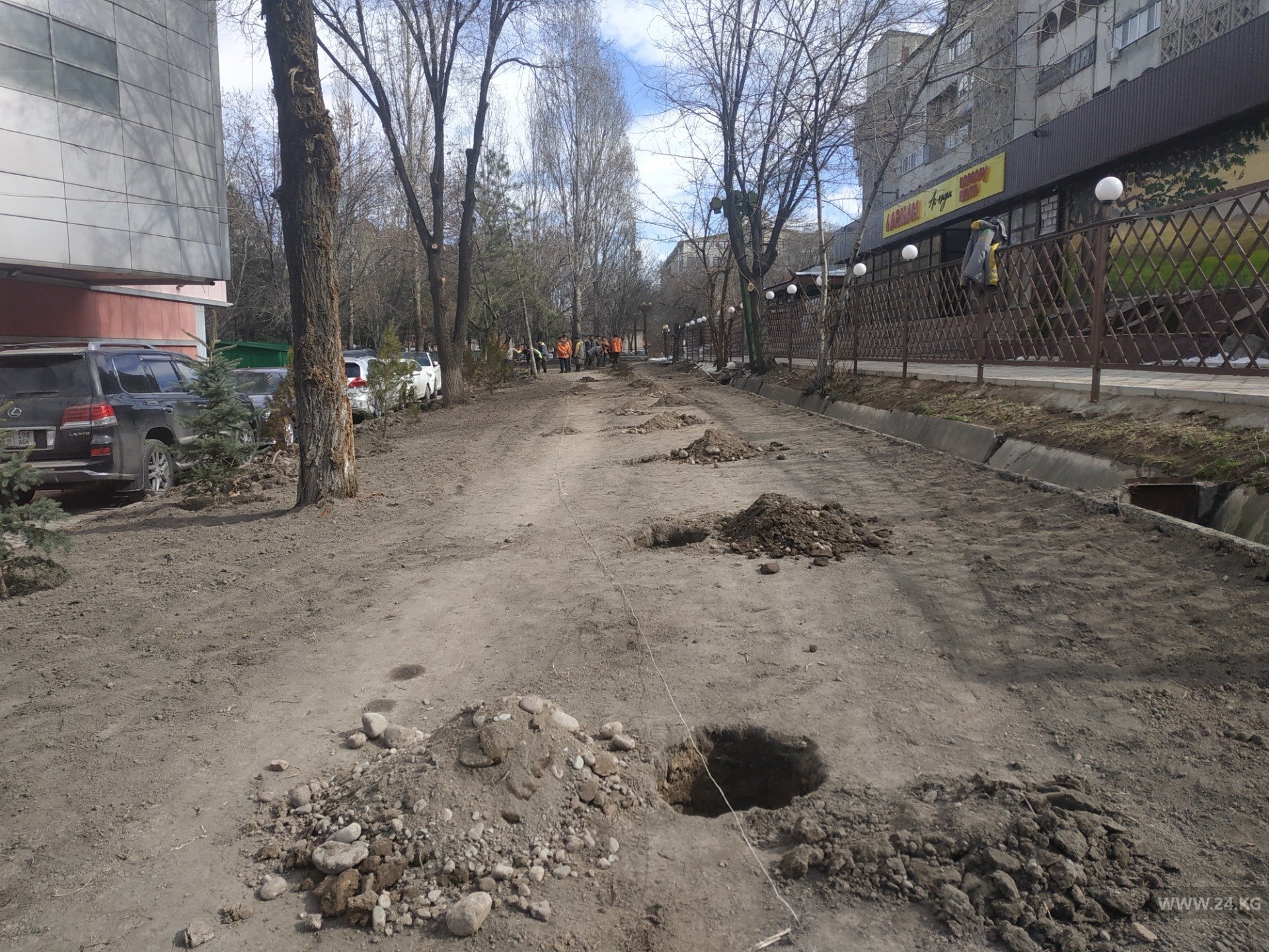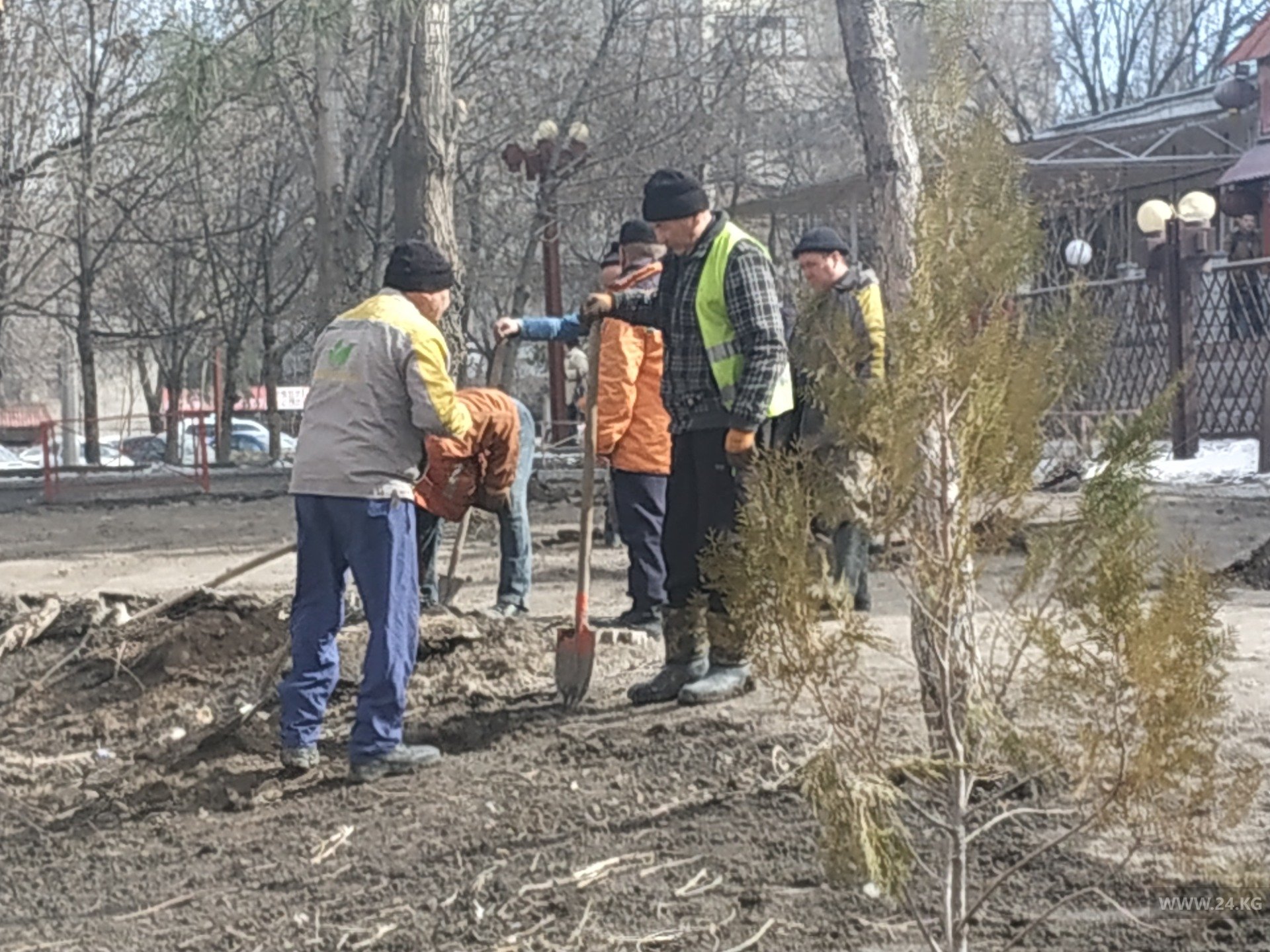 В Бишкеке возле дома «Белый пароход» убрали незаконную парковку и сажают деревья. Об этом 24-kg.com сообщил читатель.
