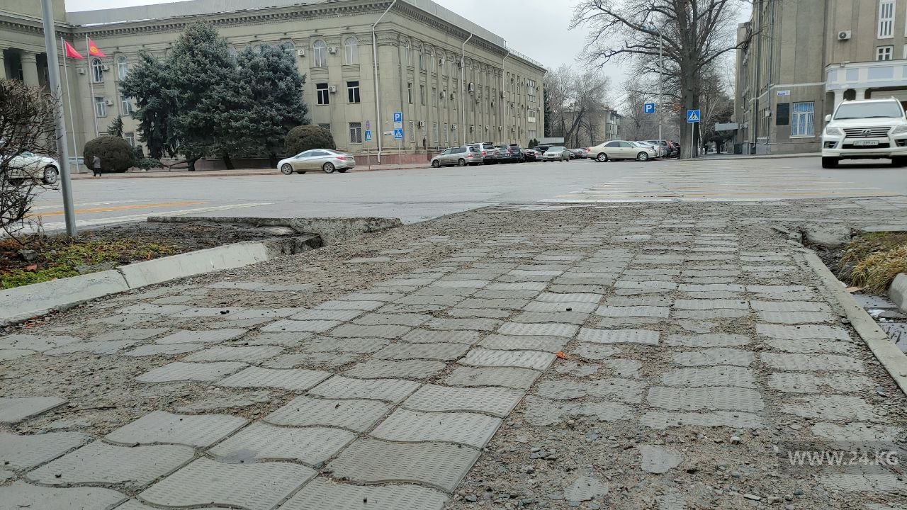 Бишкекчанин пожаловался на состояние тротуаров возле Дома правительства. Фотографии он прислал 24-kg.com.