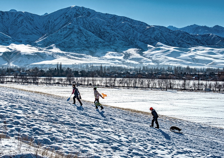 «Из поездки в Аламединское ущелье и предгорья. На календаре весна, но в горах еще лежит снег, привлекая взрослых и детей к зимнему отдыху», — написал наш постоянный автор Виктор Клейменов.