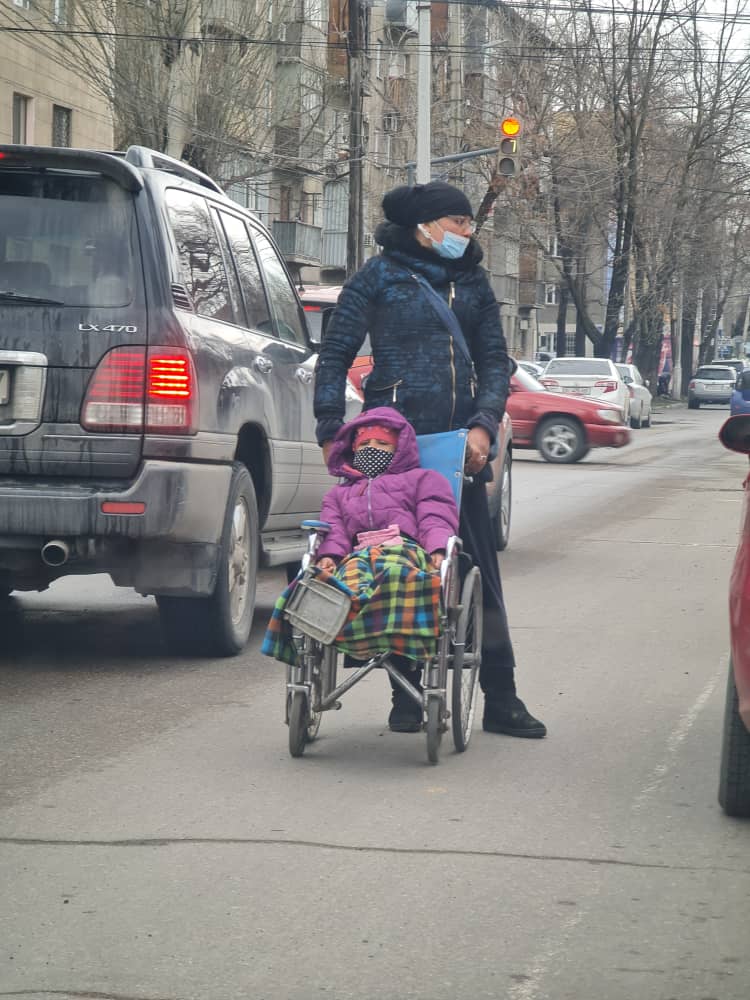 По его словам, из-за женщины с ребенком в инвалидной коляске на пересечении улиц Боконбаева и Логвиненко машины не помещались в три ряда. «Посередине одну полосу заняла попрошайка. Когда увидела, что фотографирую ее, начала жестами возмущаться. Когда же их уберут с дорог?» — задается вопросом читатель.