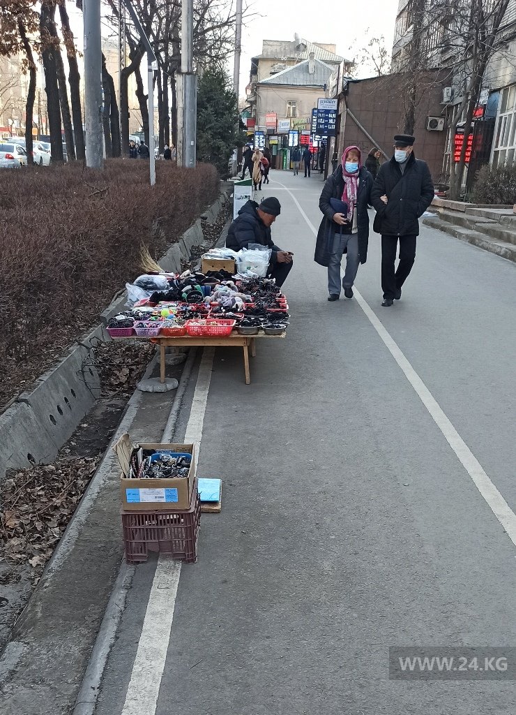 На велодорожках Бишкека стоят торговцы. В мэрии ничего не могут с ними сделать