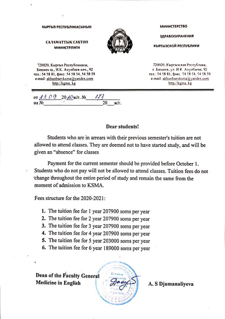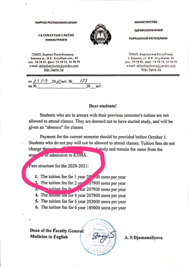«Мы узнали, что теперь за 2020-2021 учебный год должны выплатить не 207 тысяч сомов, как было указано в договоре в начале года, а 235 тысяч сомов. Иностранные студенты сейчас находятся на родине. Мы, например, в Индии и обучаемся онлайн. Академия последние две недели требует оплатить контракт и не проводит занятия», — говорит Субхаш Кумар.
