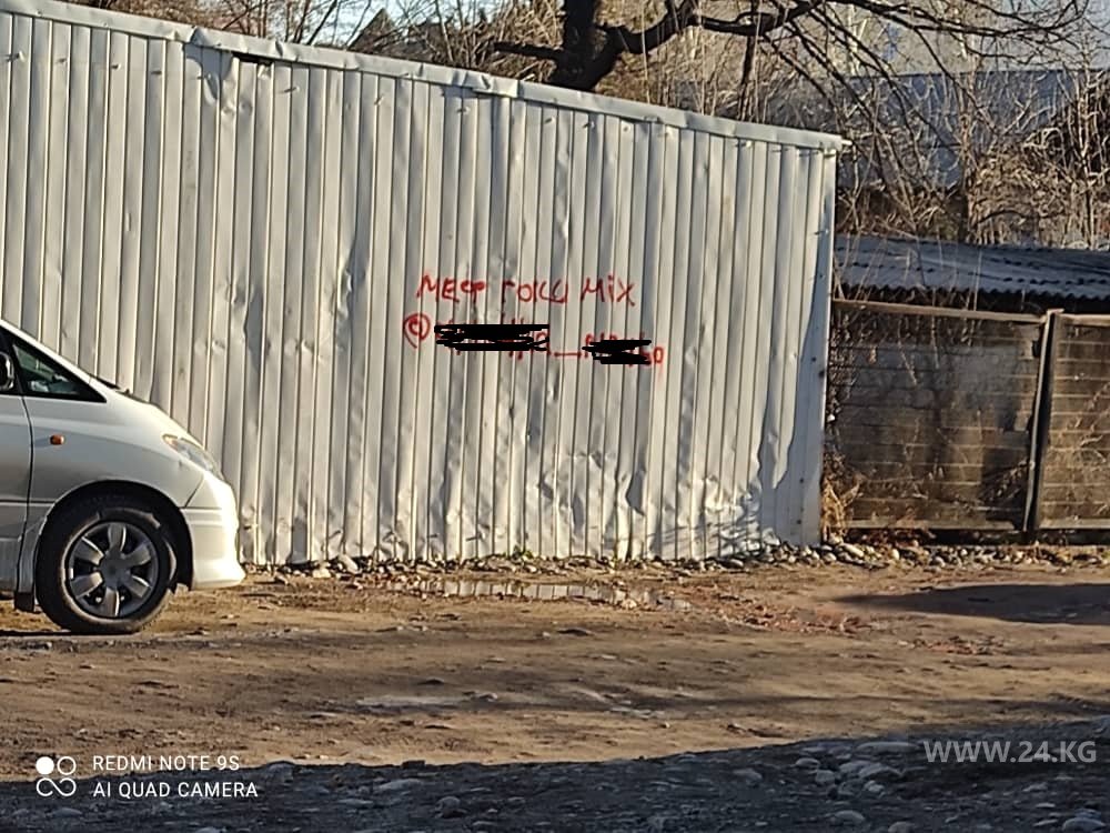Объявление написали на стене в районе пересечения проспекта Айтматова и улицы Боконбаева. «Рядом находится школа, очень проходное место», — написал очевидец.