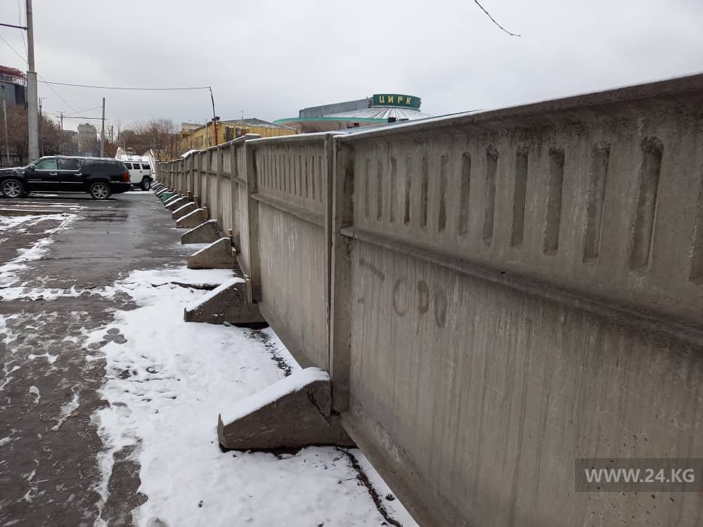 Тротуар на улице Жумабека возле цирка закрыли бетонным забором. Об этом 24-kg.com сообщил читатель.