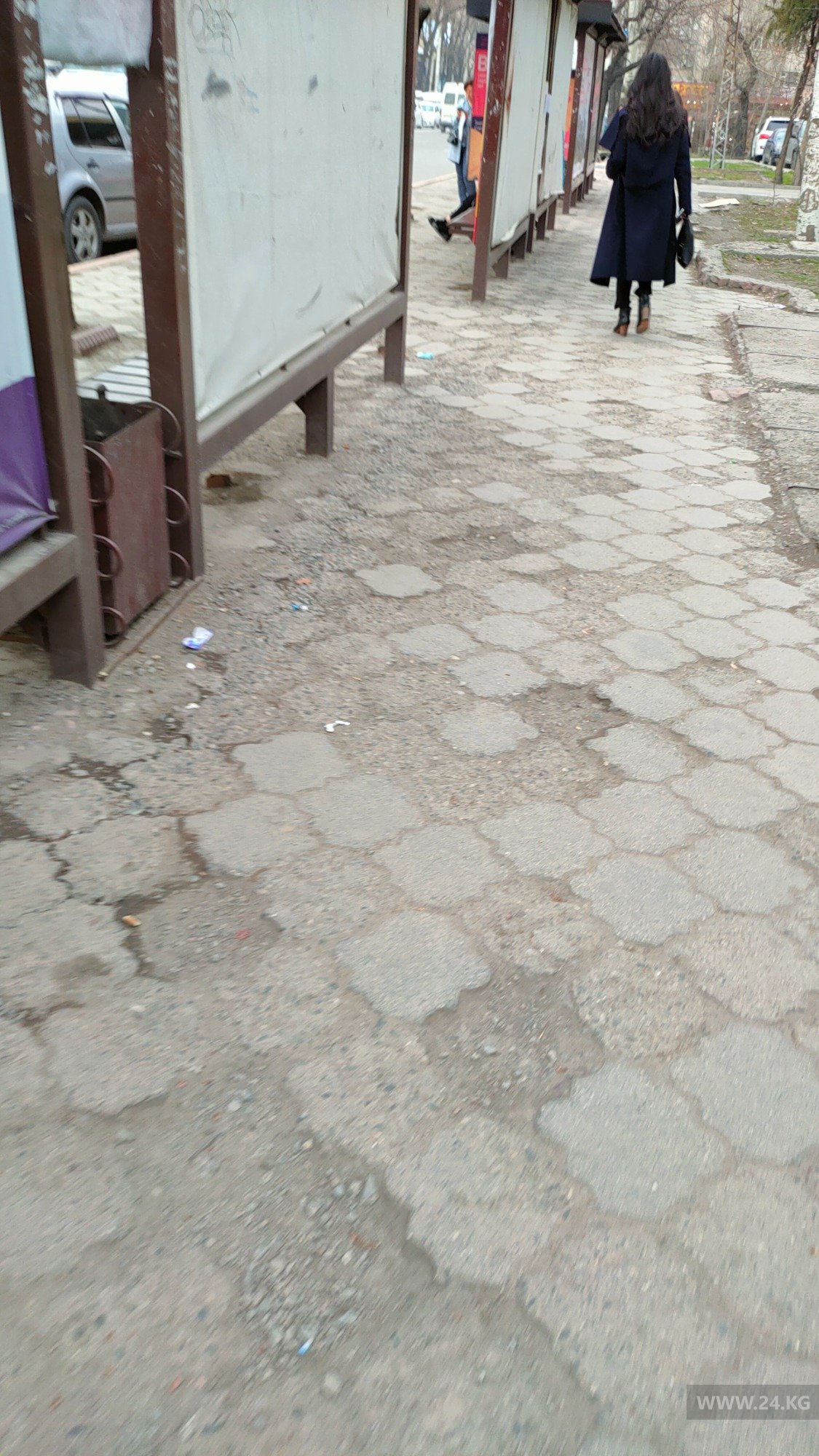 Житель Бишкека пожаловался на очередной разбитый тротуар в центре столицы. Фото он прислал в редакцию 24-kg.com.