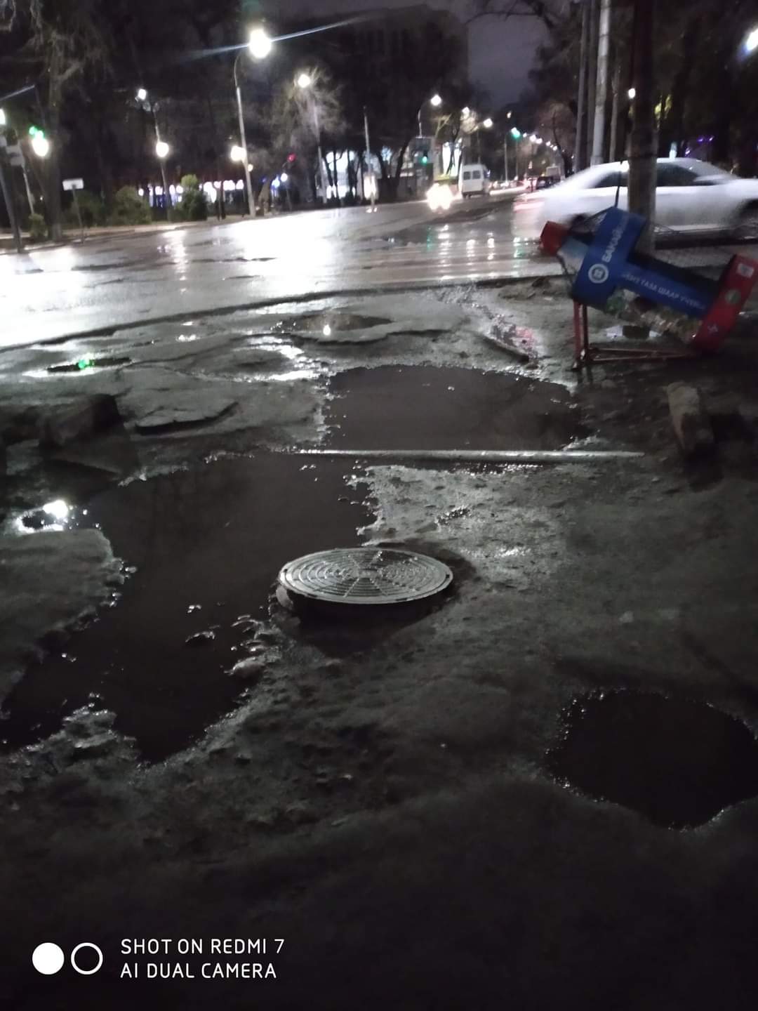 Бишкекчанка выразила свое недовольство по поводу состояния тротуара возле Ошского рынка. Фото женщина опубликовала в Facebook.
