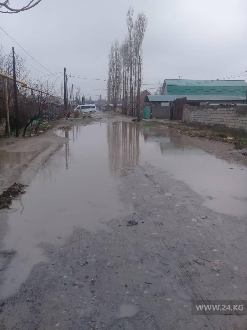 «Жилой массив «Ала-Тоо-1», улица Алай-Кум. Так как наша улица находится на границе села Новопавловка и Ленинского района Бишкека, то ни с одной стороны, ни с другой не обращают внимания на состояние улицы», — отметил читатель.