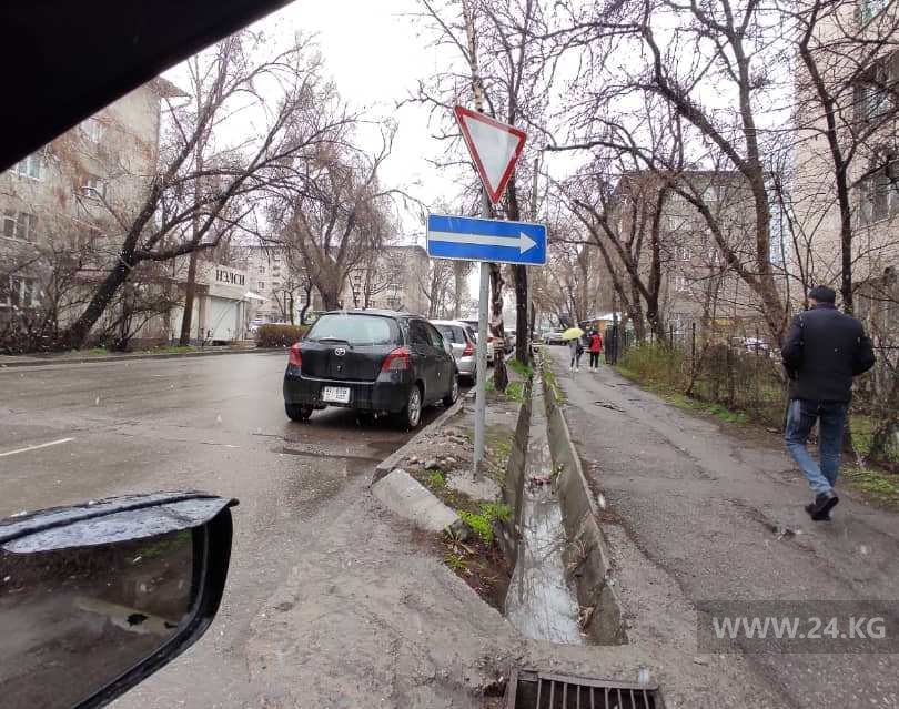 На перекрестке улицы Элебаева и переулка Геологического неправильно поставили дорожный знак. Об этом 24-kg.com сообщил читатель.