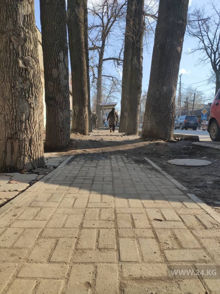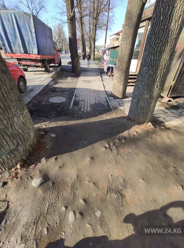 Бишкекчанка пожаловалась на тротуар на пересечении улиц Тоголока Молдо и Куренкеева. Фотографии она прислала в редакцию 24-kg.com.