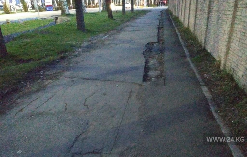 На проспекте Чингиза Айтматова, напротив парка «Адинай», недоделали тротуар. Об этом 24-kg.com сообщил читатель.