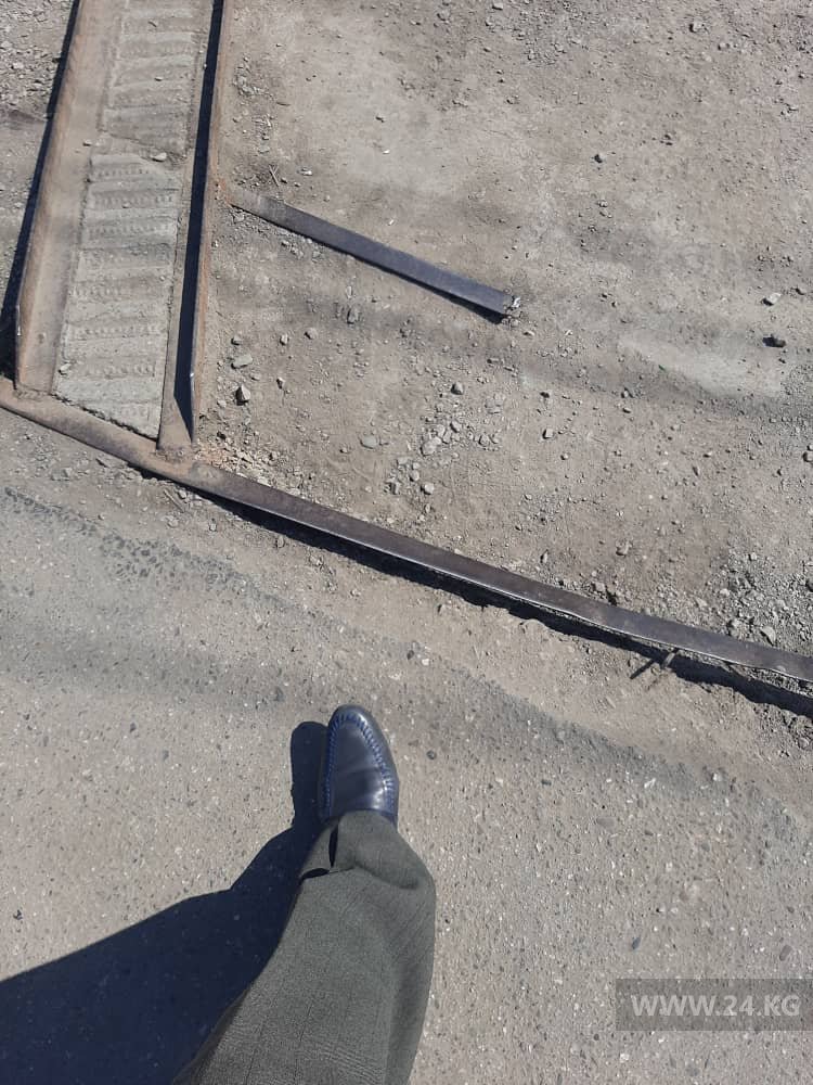 На перекрестке улиц Ахунбаева и Малдыбаева на тротуаре торчит металлический уголок. Об этом 24-kg.com сообщил читатель.