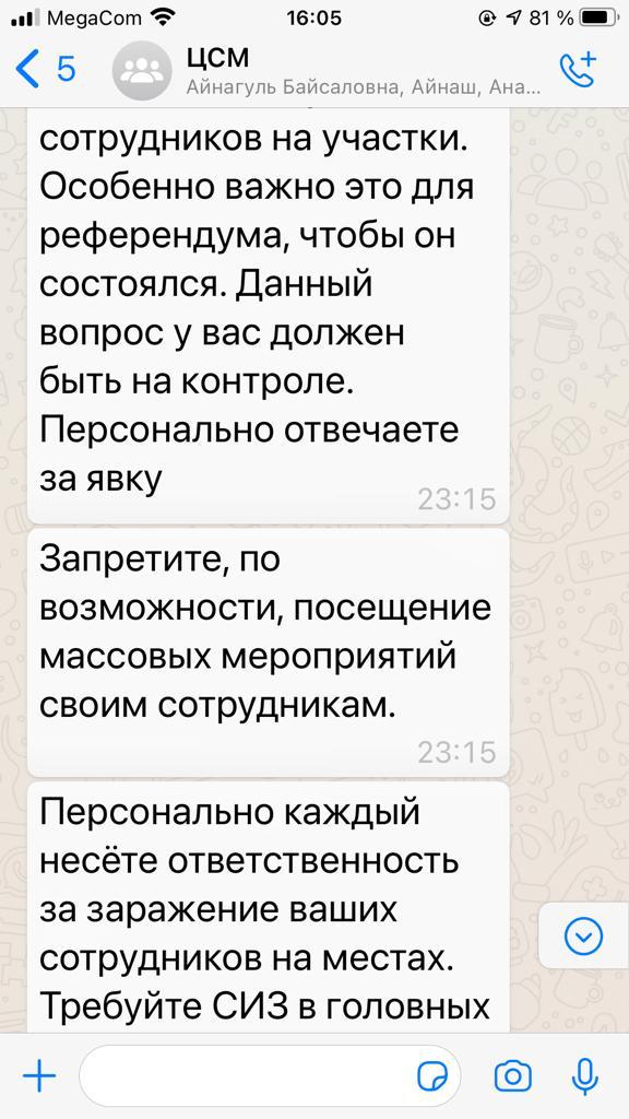 «Это в наши функции не входит вообще. Мы можем только оказывать помощь, поставить диагноз и оказать лечение. Ходить на выборы, не ходить — нас вообще не касается. Это личное дело каждого медика. Бактыгуль Исмаилова настолько превышает свои полномочия, дальше некуда. Нет никакого приказа об этом. Она не имеет права давать нам указания», — подчеркивает Гульнара Ташибекова.