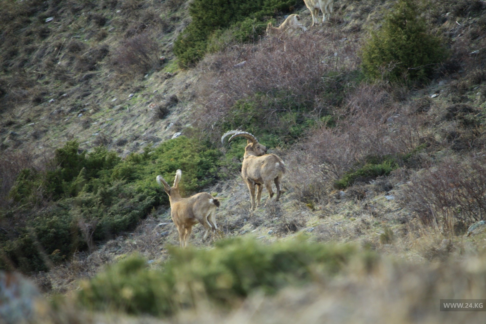 В природном парке «Ала-Арча» группе туристов удалось сделать редкие кадры сибирских горных козлов. Об этом 24-kg.com сообщил читатель.