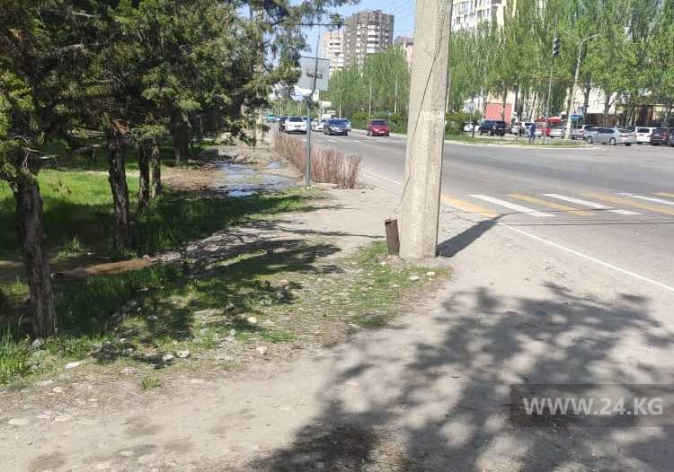 На перекрестке улиц Токомбаева и Куттубаева нет тротуара к пешеходному переходу. Фото 24-kg.com прислал читатель.