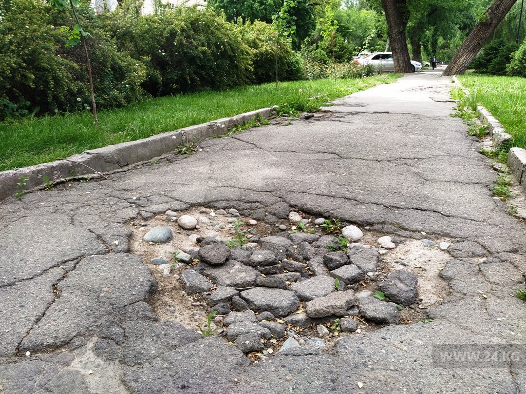 «По этому месту невозможно ходить. Все разрушено. Сплошные ямы. И это практически самый центр Бишкека. Видно, что часть тротуара кто-то пытался восстановить своими силами, но сделали это так, что лучше бы и не брались», — сказал он.