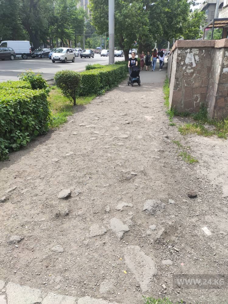 На улице Киевской и проспекте Жибек Жолу в Бишкеке разбитые тротуары. Об этом 24-kg.com сообщил читатель.