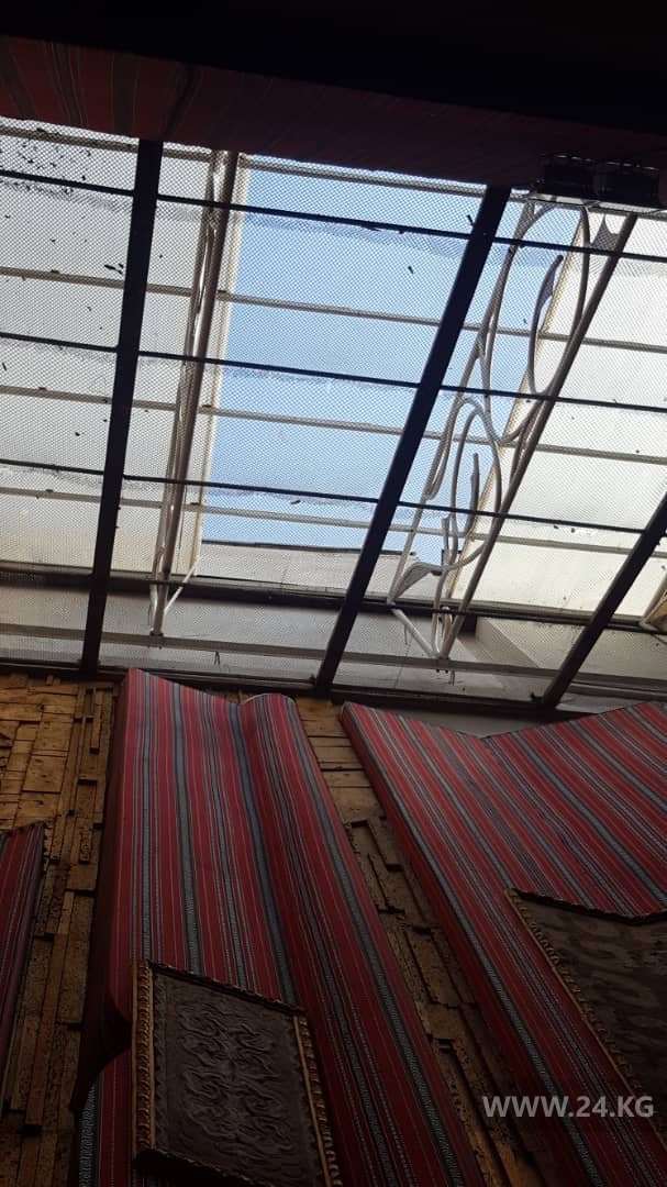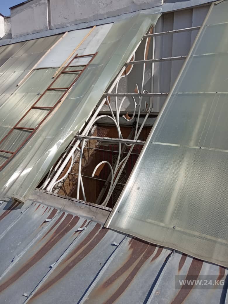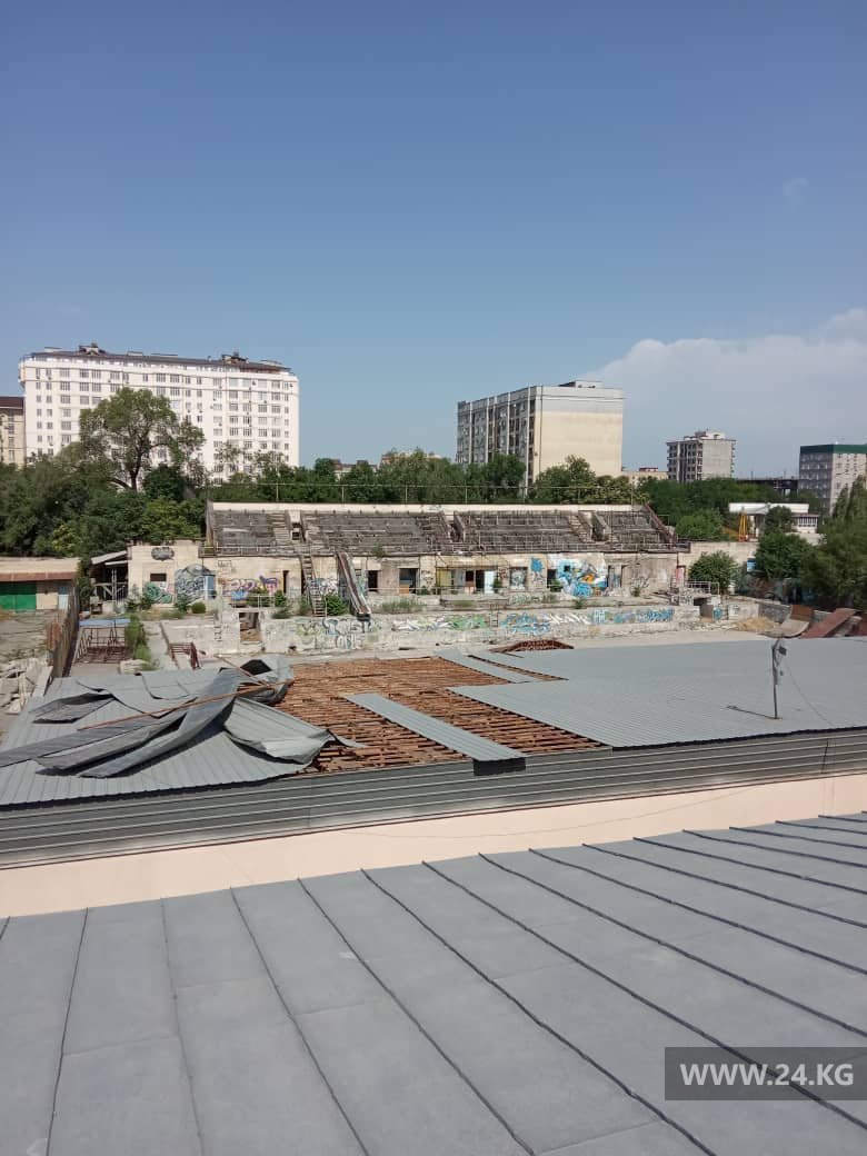 Накануне в Бишкеке ветер повредил крышу Дворца спорта имени Кожомкула. Фото 24-kg.com прислал читатель.