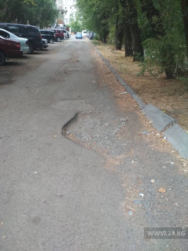 Житель Бишкека просит отремонтировать участок улицы Боконбаева на пересечении с улицей Герцена. Об этом он сообщил на WhatsApp 24-kg.com.