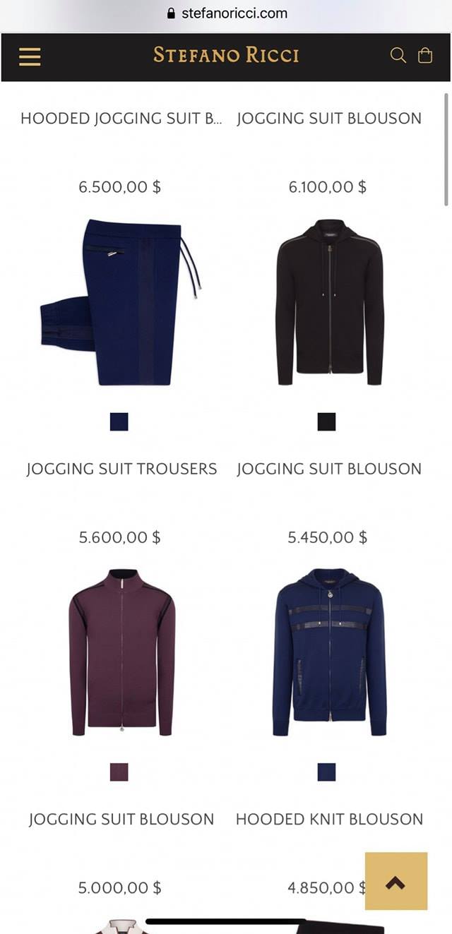 Отмечается, что на нем оригинальный костюм от Stefano Ricci. Стоимость спортивных брюк составляет $5 тысяч 600, а бомбера — $4 тысячи 850. Общая цена костюма равна $10 тысячам 450.
