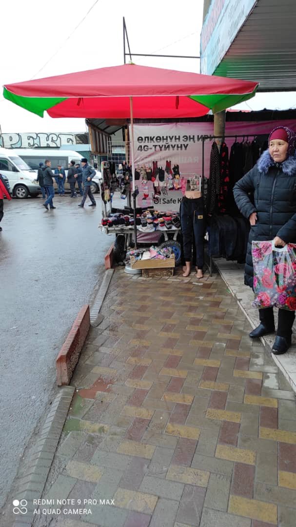 Торговцы одежды перекрыли тротуар на рынке в Токмаке. Об этом 24-kg.com сообщил читатель.